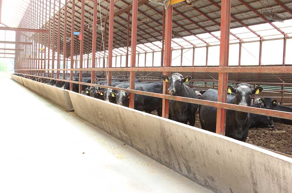 生後10ヵ月~出荷。配合飼料を中心に、乾草を与えて肥育していきます。出荷時には体重が800kgになります。