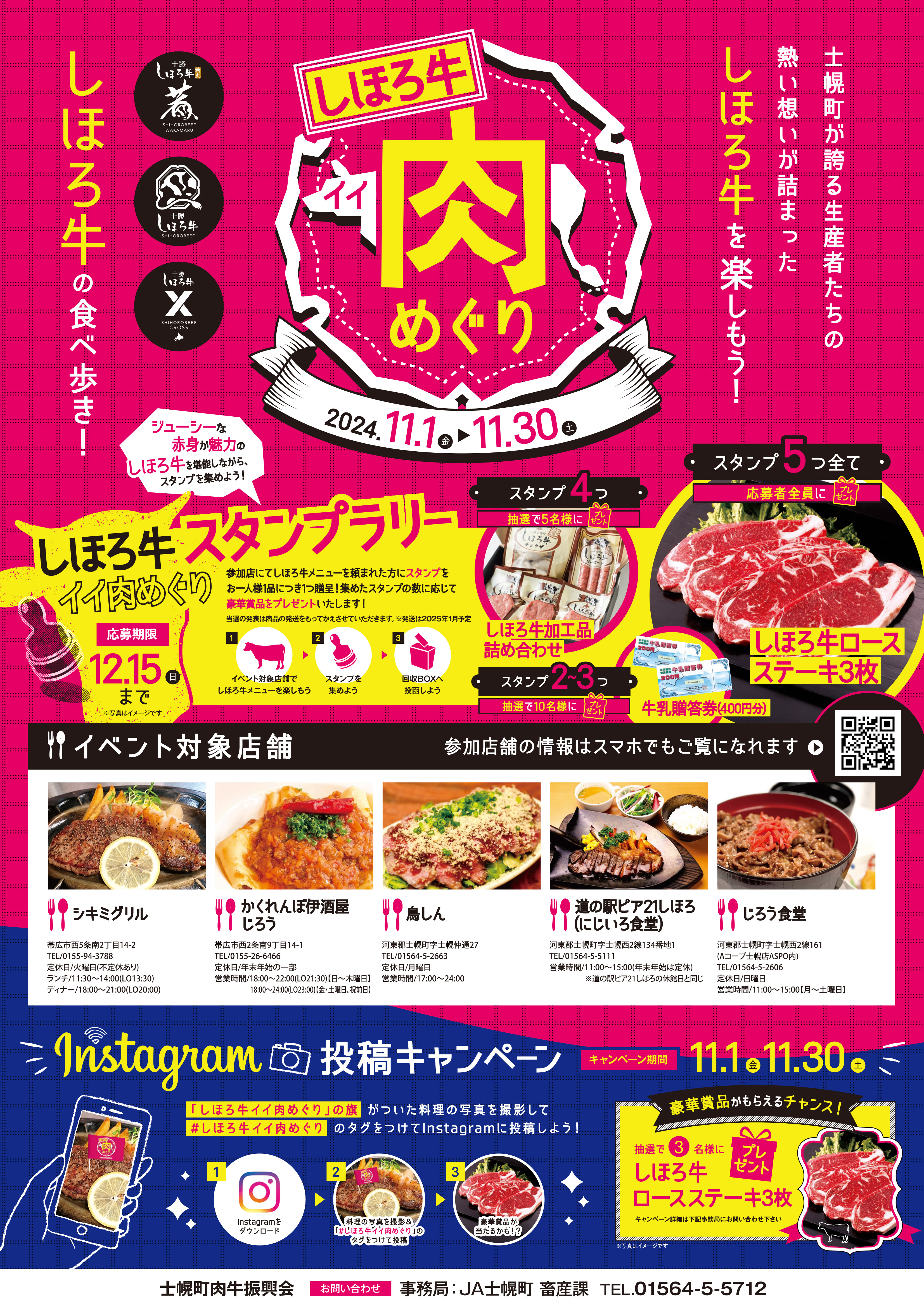 飲食店を巡り、『しほろ牛』の食べ歩きをしてスタンプを集めて応募すると